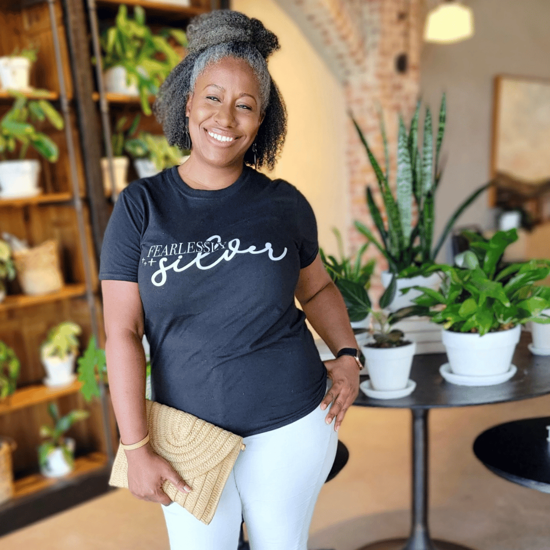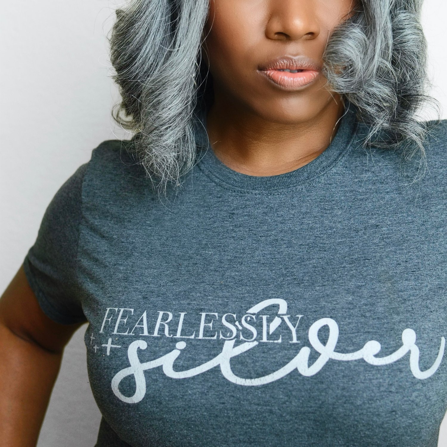 The Fearlessly Silver Tee is a must-have for any Silver Sister who wants to show off her silver crown. The Fearlessly Silver t-shirt has just the right blend of softness for all day comfort, and it's a great way to show the world that you are proud of who you are!